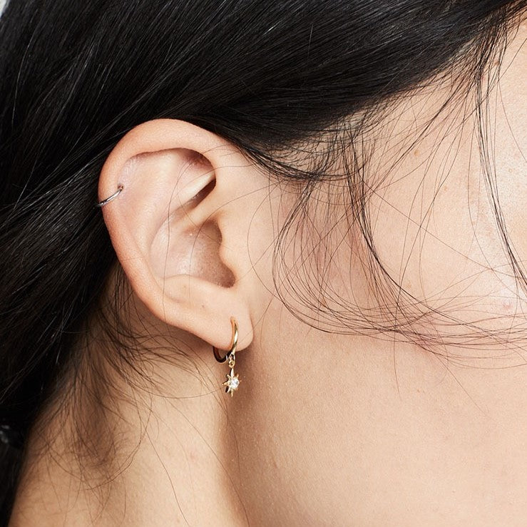 Black Crystal Flower Huggie Hoops